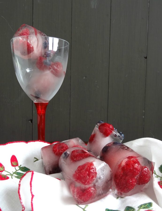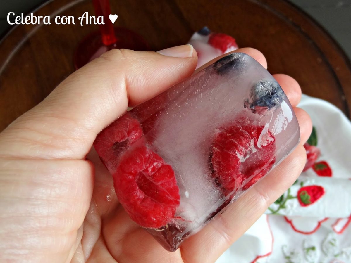 Me gustan mucho más los cubitos con frutos que con flores, así cuando se deshacen en la bebida te los puedes comer y no quedan las flores flotandoUn beso