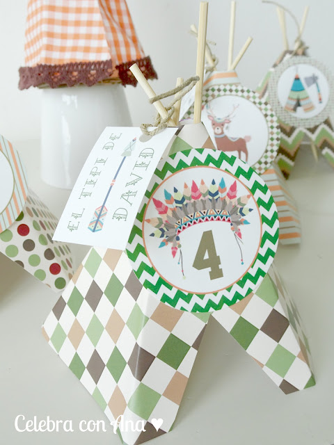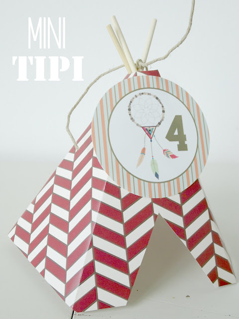 Pero no puedo dejar de mencionar otro de los «detalles top del Kit» y son los mini tipis que preparé para la ocasión y que Lucía iba a colocar sobre la mesa de la merienda para decorarla aún más…. los había de cartulina y también de tela…