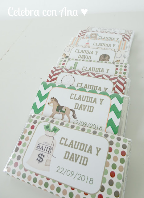 Pero cualquiera de los muchos detalles del kit me enamoraaa… las chocolatinas decoradas con sus fundas diseñadas a medida para los invitados del cumple…