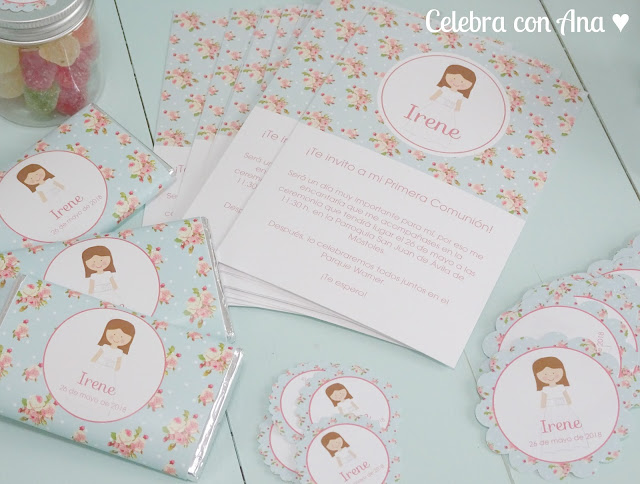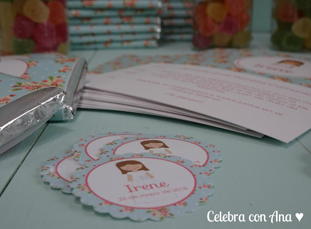Ana quería las invitaciones, chocolatinas, etiquetas para preparar ella misma unos paquetitos, botes de gominolas para los invitados y también lápices personalizados como recuerdo del día.