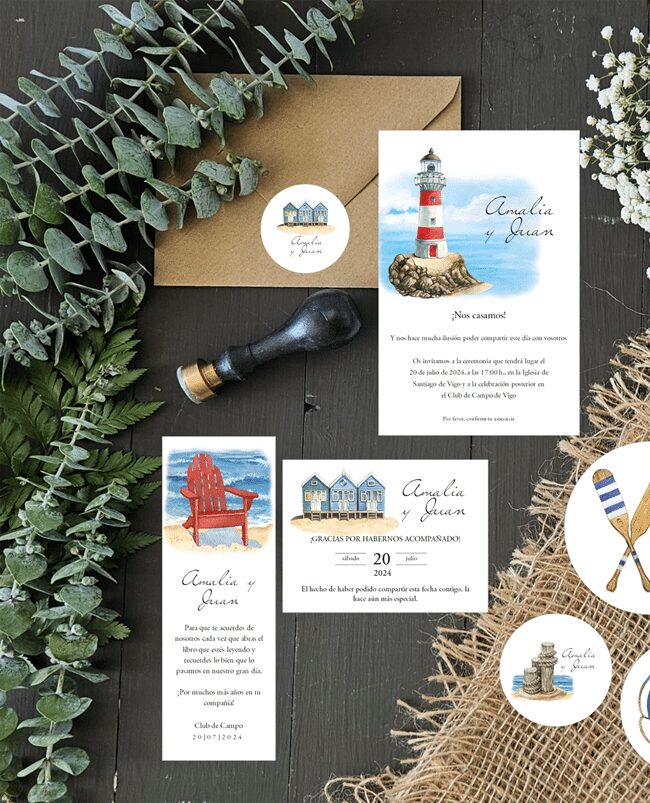 Diseñaremos todos los elementos que elijas dentro de tu Kit de Boda, en base al mismo modelo, de manera que podrás verlos en formato borrador como paso previo a su envío a imprenta y montaje.
