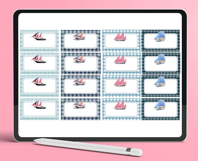 Preparar las etiquetas es facilísimo: basta con imprimirlas, preferentemente en color, cortarlas, escribir el nombre y pegarlas en los libros antes de forrar, para que se protejan bien.